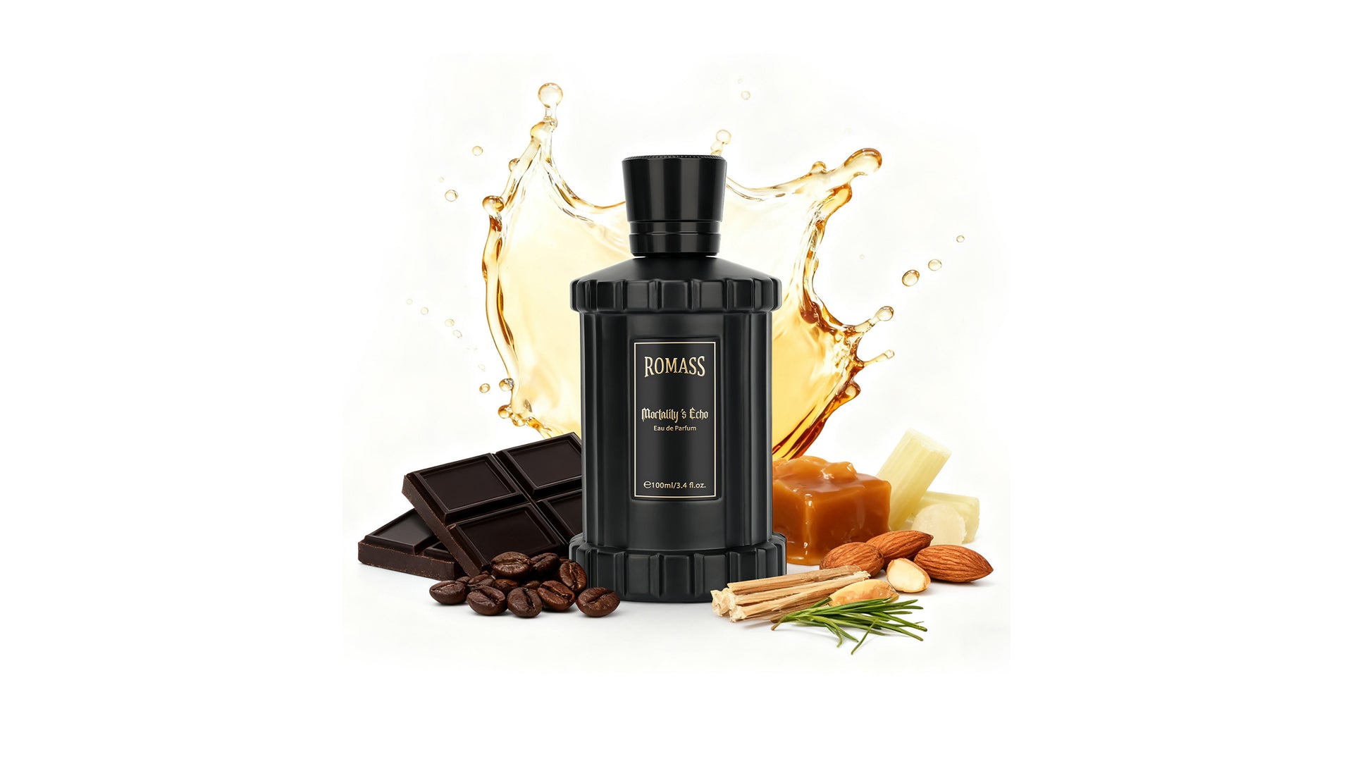 ROMASS Mortality’s Echo Eau de Parfum 3.4oz/100ml | Obsidian Black Bottle | Long-Lasting Dark Gourmand Fragrance | Notes of Dark Cocoa, Rum, and Ancient Cypress